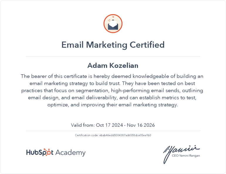 With the Email Marketing Certification, I can create targeted, effective email campaigns. It sharpens my skills in segmentation, automation, and analytics, helping me drive results and stand out with a respected credential.