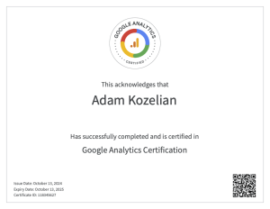 The Google Analytics Certification enhances my ability to analyze data and track performance. It equips me to make data-driven decisions and improve strategies, giving me an edge with a respected credential.